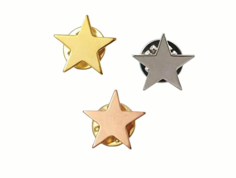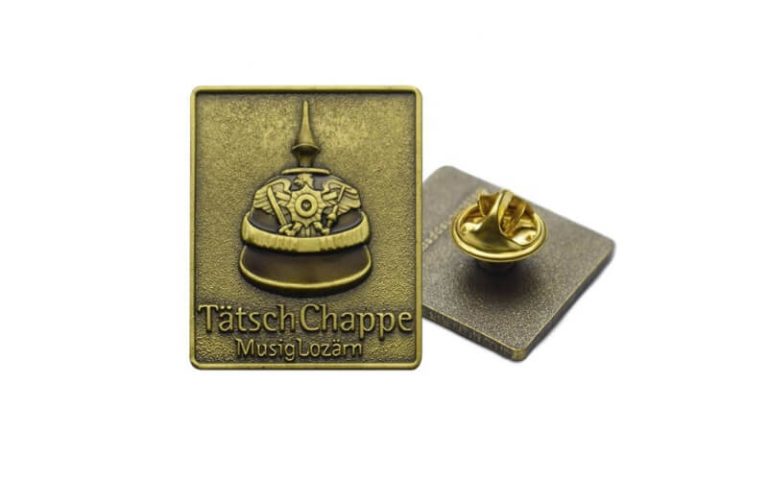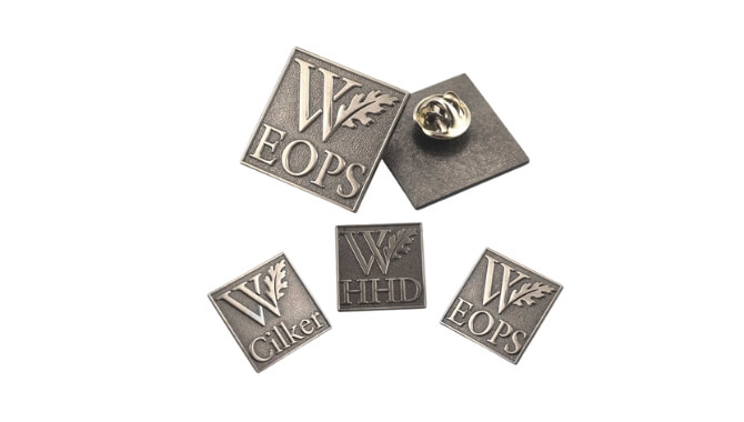 Die-struck pins are small metal pins with 2D engraved logos, including raised and recessed areas. No color painted. Custom die-struck lapel pins can be plated with polished gold, silver, and copper metal finishes. as well as antique colors.
