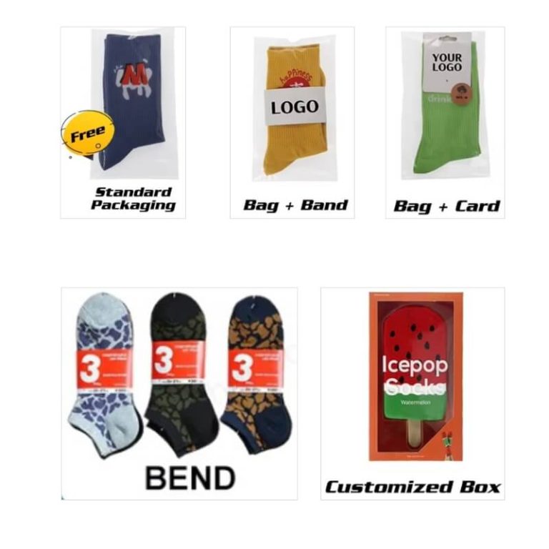 We offer opp bags (standard package), header card, plastic hood. If you run sock business, these packages work for you.