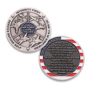 Unlike single-sided challenge coins, Double-sided challenge coins allow for maximum design versatility. You can design one side for your organization’s emblem and the other for a commemorative message or date.