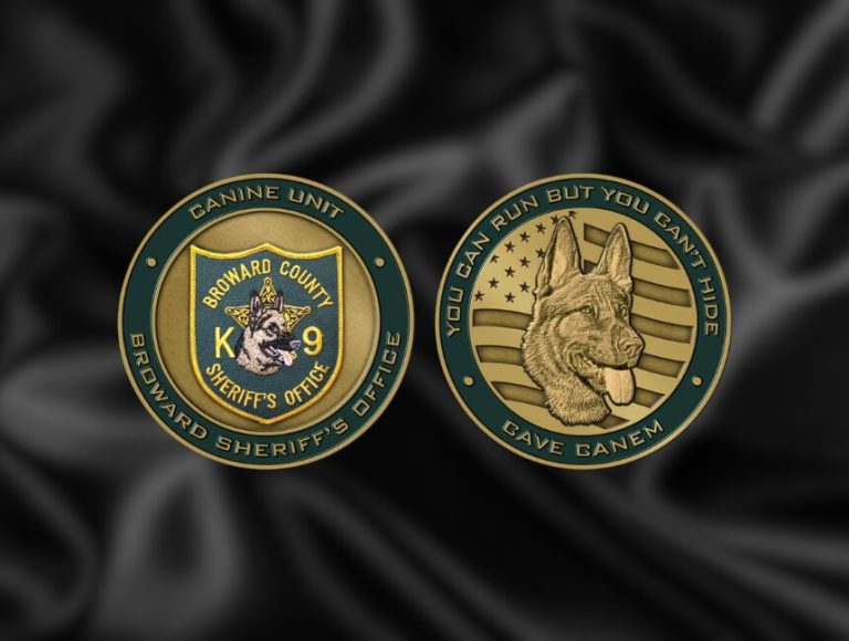 K9 Challenge Coins honor the dedication and bravery of K9 officers and their loyal partners. They celebrate the critical role of K9 teams in law enforcement and recognize their exceptional service. These coins symbolize the bond between officers and their dogs.