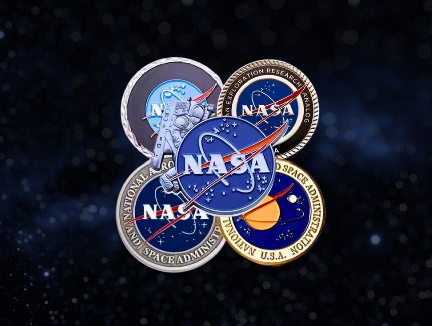 Pinsfun is a professional manufacturer of NASA Challenge Coins, we have some NASA coins stock and we do custom designs.