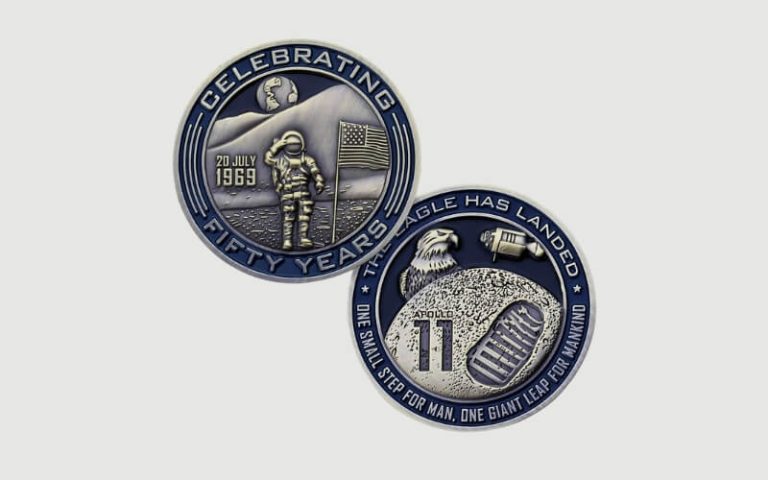 - You can customize coins featuring the official “NASA” logo and specific program texts and country flag. with standard coin size: 1.75” and 2”, with full-color painted.