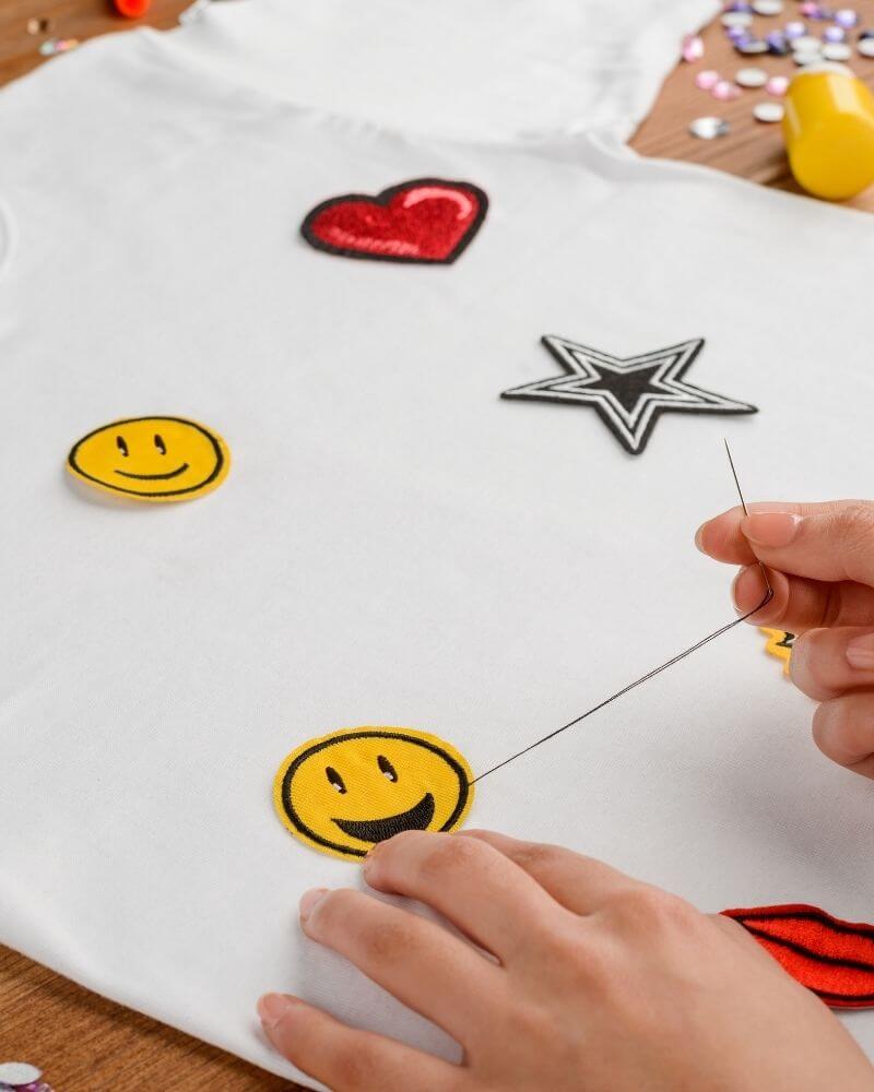 Sewing a patch onto a garment or accessory requires time and patience. |