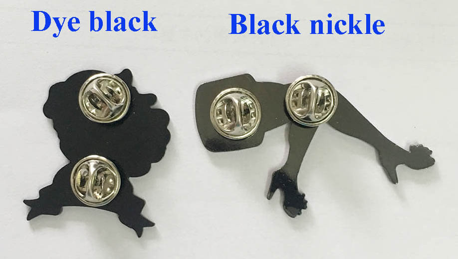 If you want black metal, the black metal surface of soft enamel pins can be painted black, or it can be black nickel. While hard enamel pins can be with black nickel plating, similar to gun color.