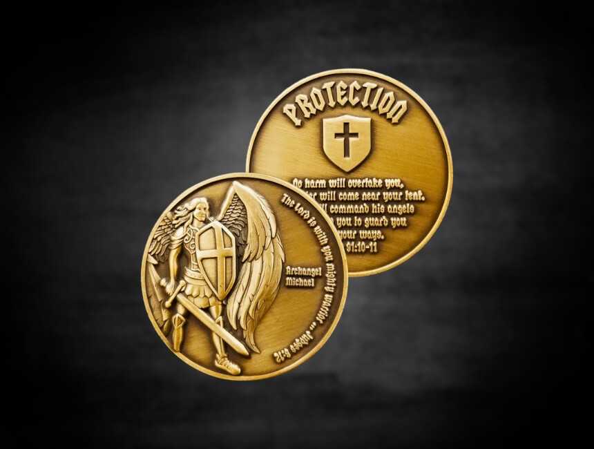 Saint Michael Coins feature Saint Michael, they are crafted with delicate raised 3D details, like Serenity Prayer, Guardian Angel, symbolizing love, protection, and gratitude.