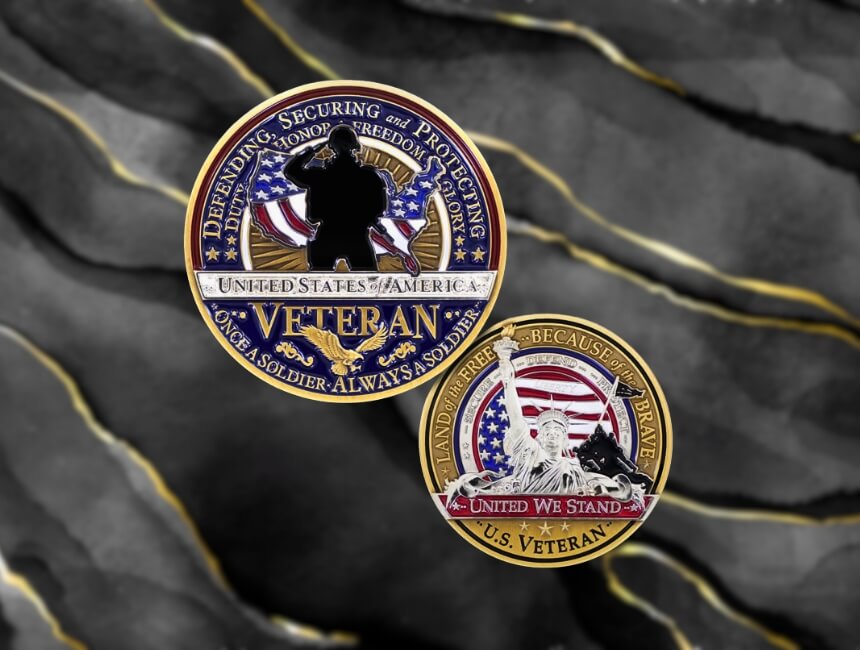 Pinsfun is proud to offer high-quality Veteran Challenge Coins at moderate factory price with stable turnaround 10-15 days.